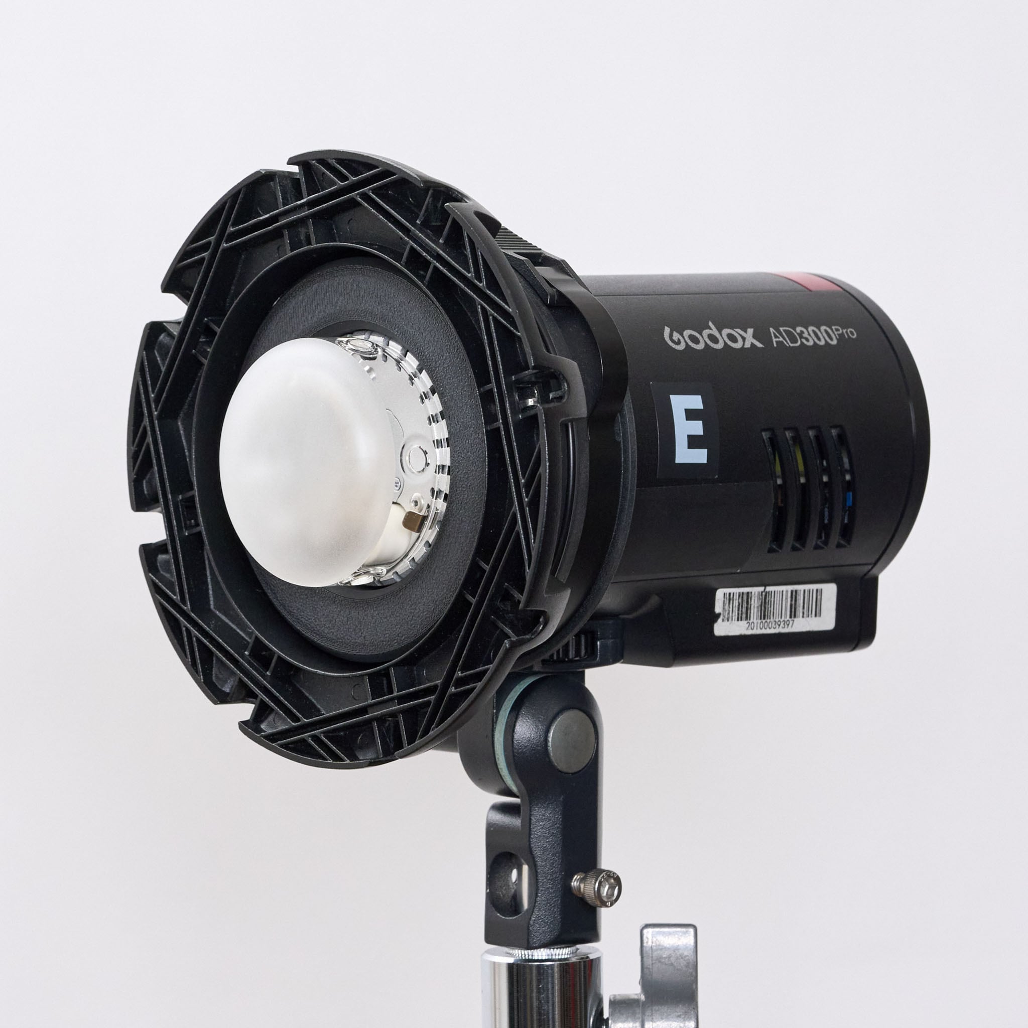 Godox AD300Proに、Profoto製のOCFソフトボックスを装着するための変換アダプターです。